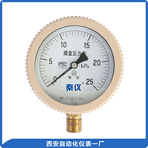 YE-100 YE-150膜盒壓力表采用膜盒片作為測(cè)量微小壓力的敏感元件。測(cè)量對(duì)銅合金不起腐蝕作用、 無(wú)爆炸危險(xiǎn)氣體的微壓和負(fù)壓,廣泛應(yīng)用于鍋爐通風(fēng)、氣體管道、燃燒裝置等及其它類(lèi)似設(shè)備上。