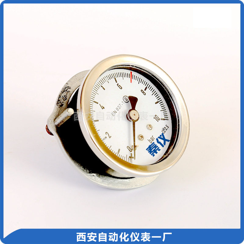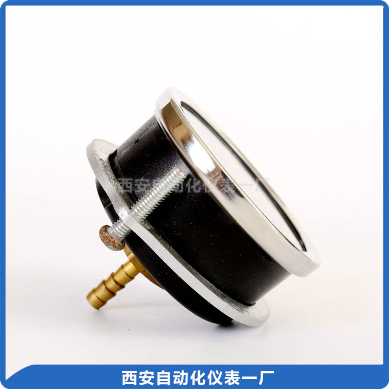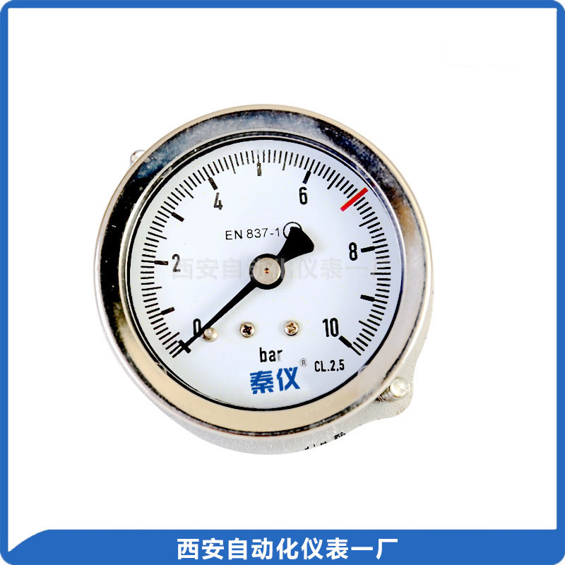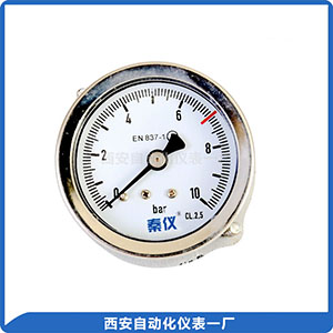 普通壓力表適用于測(cè)量無(wú)爆炸危險(xiǎn)、不結(jié)晶、不凝固及對(duì)銅及銅合金不起腐蝕作用的液體、蒸氣和氣體等介質(zhì)的壓力。 徑向帶后法蘭,皮管接頭用于安裝。
