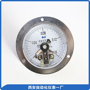 在電接點(diǎn)裝置的電接觸信號針上,裝有可調(diào)節(jié)的永久磁鋼,可以增加接點(diǎn)吸力,加快接觸動作,從而使觸點(diǎn)接觸可靠,消除電弧,能有效地避免儀表由于工作環(huán)境振動或介質(zhì)壓力脈動造成觸點(diǎn)的頻繁關(guān)斷。所以該儀表具有動作可靠、使用壽命長、觸點(diǎn)開關(guān)功率較大等優(yōu)點(diǎn)。