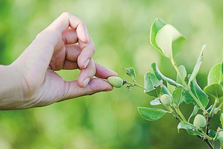 欖錢是紅樹林生長的一種果實,在我國廣西、廣東、福建、臺灣等南部沿海地區(qū)都有產(chǎn)出,樹皮灰白色、粗糙、常作痂皮狀剝離;葉對生、革質(zhì)、肥厚油亮,橢圓形,葉背密被灰白色茸毛,葉片上的鹽腺可將植物體內(nèi)過多的鹽分排出;花,黃綠色,有濃烈香氣,無柄,數(shù)朵聚生于枝頂,萼5裂,裂片平開,雄蕊4枚,子房存萼,內(nèi)含10枚種子?;ㄆ?~8月,果期8~10月。