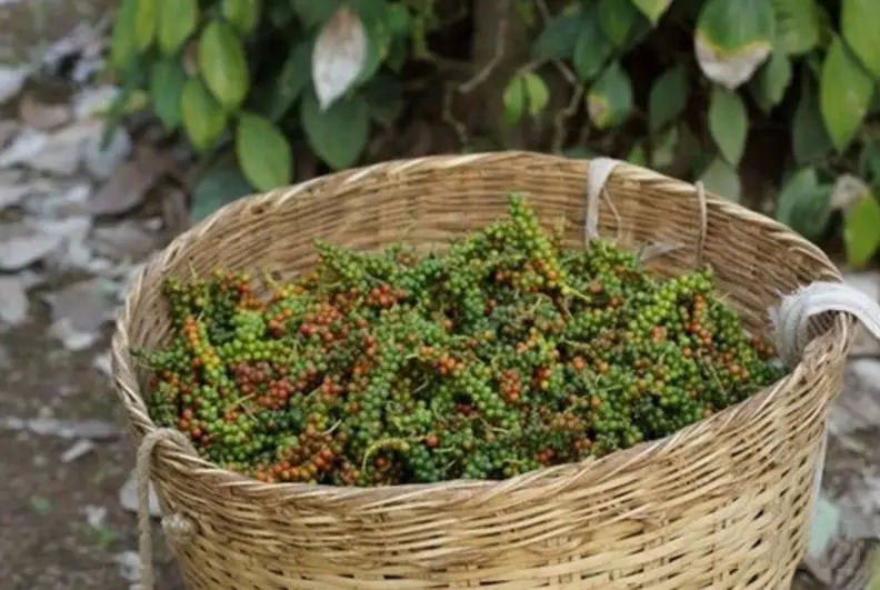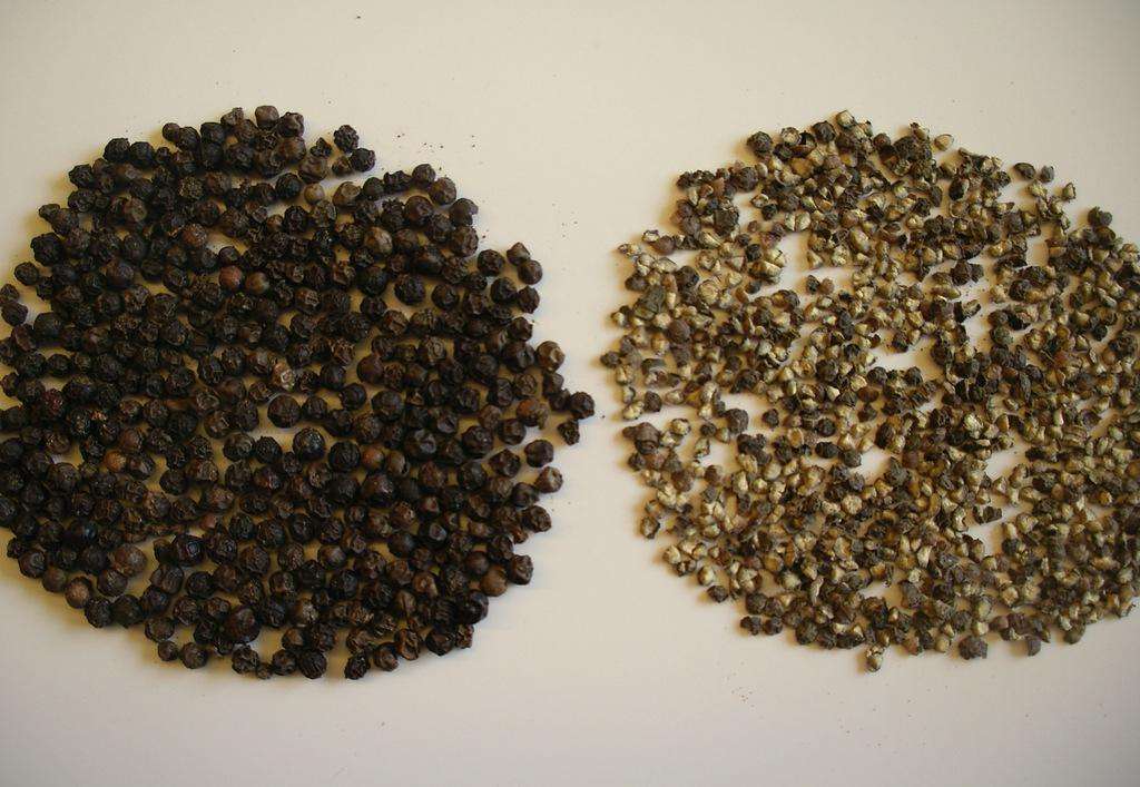 黑胡椒和白胡椒并不是胡椒種類的不同,而僅僅只是胡椒采收和生產(chǎn)工藝的不同而已。黑胡椒以胡椒果實(shí)長大且較均勻時(shí),采摘未完全成熟的綠胡椒,以此作為烘干黑胡椒的原料;白胡椒以胡椒穗中有部分果實(shí)色澤由青轉(zhuǎn)黃、轉(zhuǎn)紅時(shí),采摘整串胡椒穗,此作為烘干白胡椒的原料。