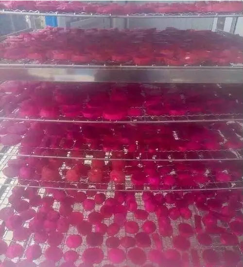 火龍果是仙人掌科、量天尺屬的栽培品種,火龍果中含有植物性白蛋白,這種有活性的白蛋白具有黏性、膠質性,會自動與人體內的重金屬離子結合并通過排泄系統(tǒng)排出體外,從而起解毒作用。火龍果營養(yǎng)豐富,口感甘甜,并且適合絕大多數人群使用,尤其適合減肥人群使用,火龍果熱量低,并且富含水溶性纖維,此類纖維吸水就會膨脹產生膠狀物質并在胃部中停留較長時間,從而延長飽足感,有良好的減肥效果。制好的火龍果干烤成片狀,口感如嚼芝麻軟糖般甜軟,非常好吃。本文簡要分享使用火龍果烘干機制作低糖火龍果脯的制作步驟,希望對火龍果農和生產商有所幫助。