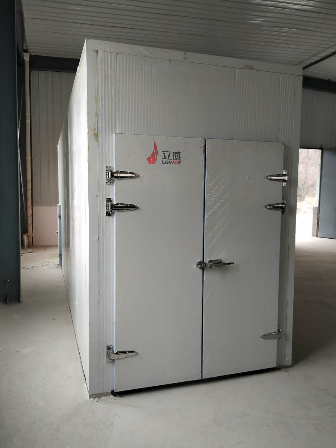 3、下面以采用一臺(tái)3P長(zhǎng)3.5*寬2.2*高2.2的空氣能藍(lán)莓烘干房烘干500斤新鮮藍(lán)莓為例,簡(jiǎn)述一下藍(lán)莓烘干的過(guò)程。