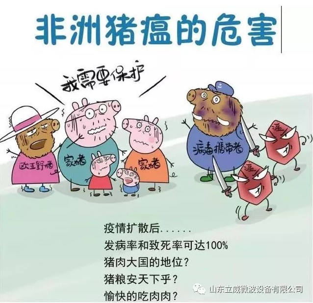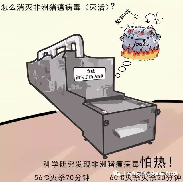 非洲豬瘟病毒存活時間長,低溫暗室內(nèi)可生存六年,室溫中可活數(shù)周。但這個病毒卻有個致命的弱點(diǎn)就是不耐高溫,加熱被病毒感染的血液、飼料到55℃30分鐘或60℃10分鐘,病毒就會被破壞、殺滅,因此用立威微波殺菌殺毒設(shè)備,便可以大顯身手的剿滅這些細(xì)菌和病毒。